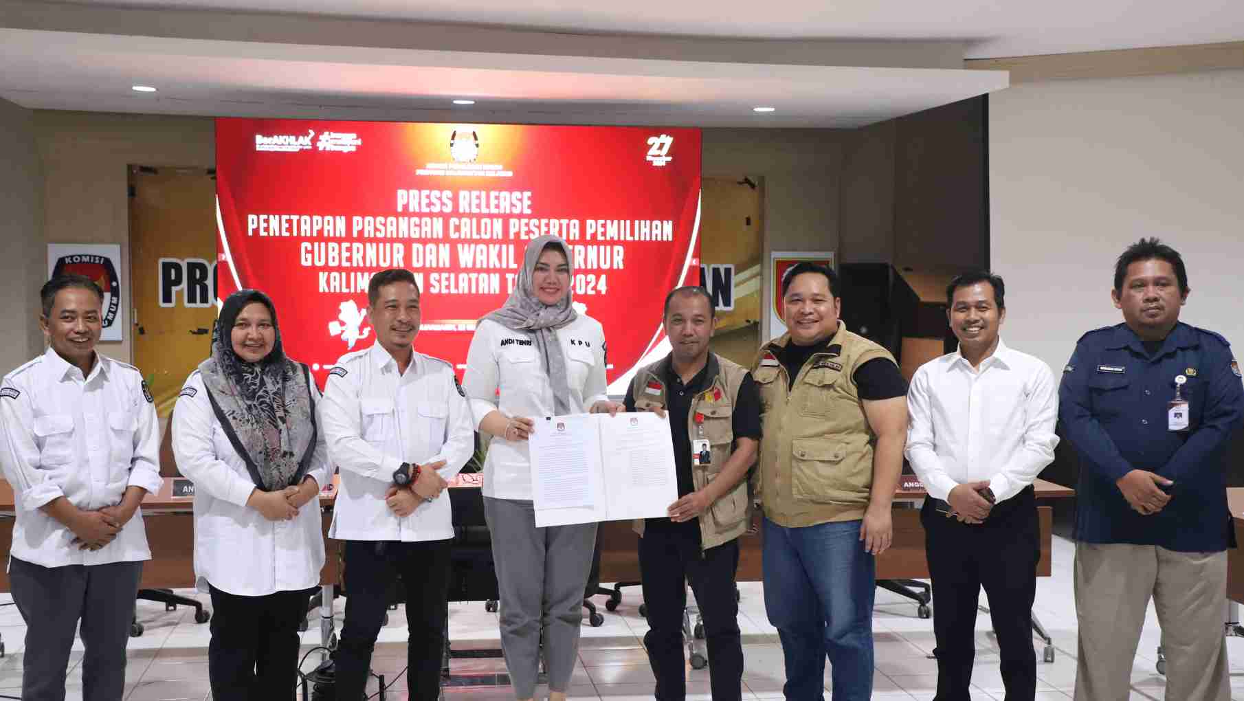 Usai menggelar Pleno Tertutup Penetapan Calon ,KPU Kalsel resmi menetapkan pasangan Raudatul Jannah-Akhmad Rozanie Himawan Nugraha dan Muhidin-Hasnuryadi Sulaiman sebagai Pasangan Calon Gubernur-Wakil Gubernur Kalimantan Selatan 2024-2029 dalam Pemilihan Serentak Kalsel 2024.