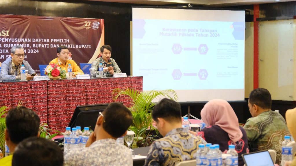Anggota Bawaslu Kalsel Thessa Aji Budiono (paling kanan) dalam Rakor Evaluasi Coklit Tahap 2 yang diselenggarakan KPU Kalsel di Banjarmasin , Jumat ,(12/7/2024) / Foto: Reno
