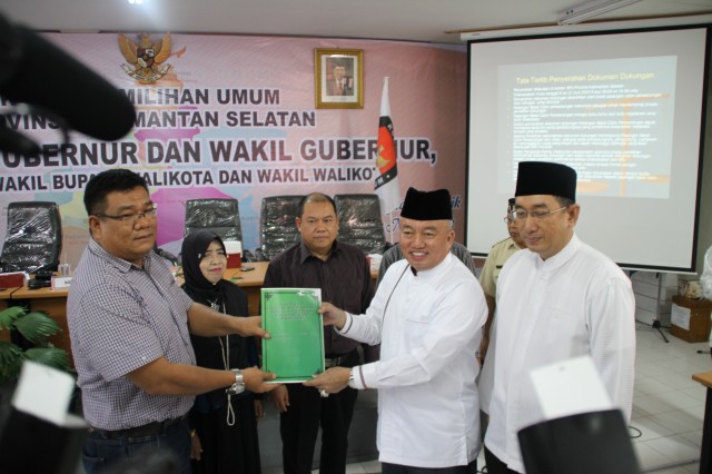 Ketua KPU Provinsi Kalimantan Selatan Dr. Samahuddin Muharram menjelaskan tata cara penyerahan syarat dukungan calon perseorangan dimulai dari bakal calon menyerahkan kepada komisioner Kpu kemudian komisioner Kpu menyerahkan kepada petugas untuk mengecek dokumen persyaratan dukungan pelaksanaan pengecekan ini hanya memastikan kelengkapan dokumen untuk bisa diperbaiki.
