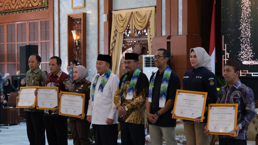 Piagam penghargaan diterima langsung oleh Ketua Bawaslu Kalsel Aries Mardiono dari Gubernur Kalimantan Selatan H. Muhidin, didampingi Kepala Kantor Wilayah Ditjen Perbendaharaan Provinsi (DJPb) Kalsel Syafriadi, dan Ketua DPRD Provinsi Kalsel Supian HK dalam kegiatan penyerahan Daftar Isian Pelaksanaan Anggaran (DIPA) dalam Daftar Alokasi Transfer ke Daerah (TKD) Tahun Anggaran 2025 di Mahligai Pancasila, Banjarmasin.
