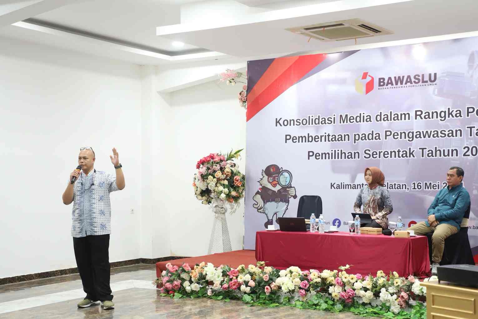 Ketua Bawaslu Kalsel Aries Mardiono saat kegiatan konsolidasi media dalam rangka penguatan pemberitaan pada pengawasan tahapan Pemilihan Serentak 2024 mengatakan, sinergitas antara bawaslu dan media menghadirkan informasi yang mencerdaskan bagi masyarakat terkait pengawasan pemilu.