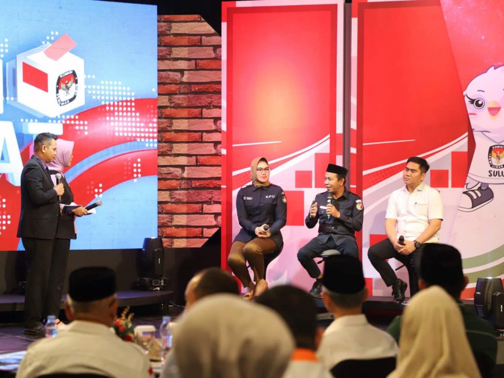 (dari kiri) Ketua KPU Kalsel; Andi Tenry, Ketua Bawaslu Kalsel; Aries Mardiono, Kasubdit I Polda Kalsel; AKBP Rizali saat mengisi program “Pilihan Rakyat†yang diselenggarakan oleh KPU Kalsel di Banjarmasin, Selasa(20/12/2023)/ Foto: Isya