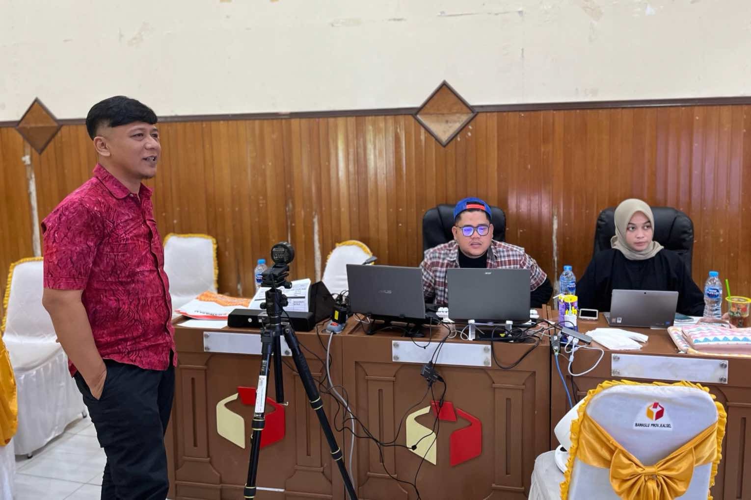 Koordinator Divisi SDM, Organisasi, dan Diklat Bawaslu Kalsel Des Rizal Rachman Rofiat Darodjat saat pengawasan server CAT Panwascam di aula Bawaslu Provinsi Kalsel , Banjarmasin, Senin ,(13/05/2024) / Foto: Edwin