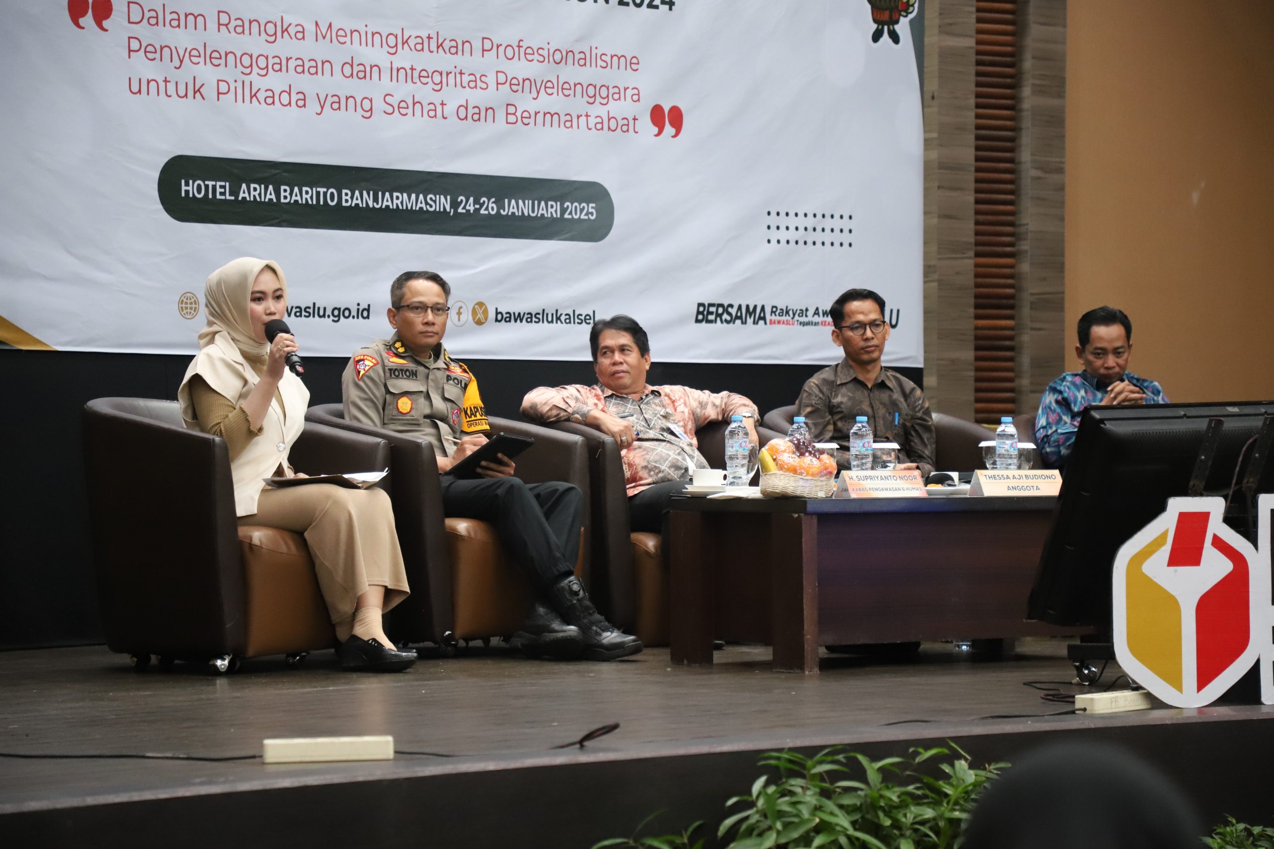 Anggota Bawaslu Kalsel Thessa Aji Budiono dalam kegiatan Rapat Evaluasi Tahapan Tungsura dan Penyusunan Pemutakhiran Data Pemilih di Banjarmasin, Jumat , (24/1/2025) / Foto: Edwin