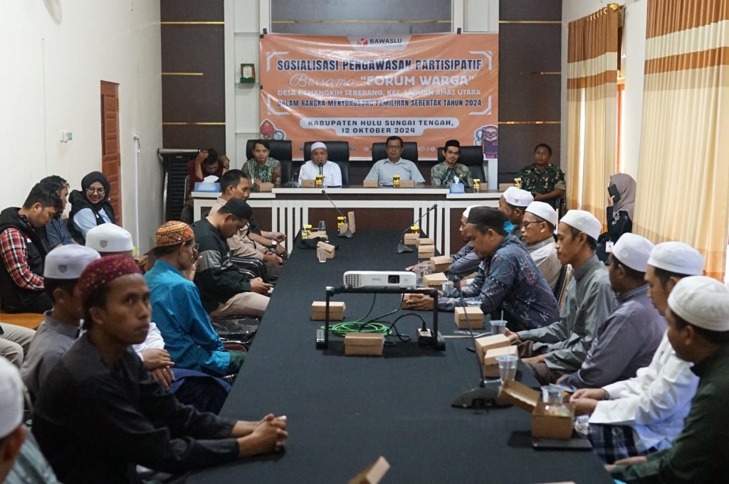 Bertempat di salah satu komplek Pondok Pesantren , Bawaslu Kalsel kembali menggelar program forum warga untuk melibatkan masyarakat dalam pengawasan Pilkada 2024 di Desa Pemangkih Seberang Kecamatan Labuan Amas Utara, Kabupaten Hulu Sungai Tengah, Sabtu (12/10/ 2024).