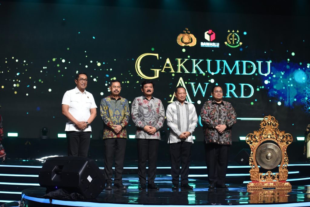 Selain Ketua Bawaslu RI Rahmat Bagja serta Anggota Bawaslu RI Puadi dan Herwyn J. H. Malonda, penghargaan Gakkumdu Award 2024 juga dihadiri oleh Menteri Koordinator Bidang Politik, Hukum, dan Keamanan Hadi Tjahjanto dan Menteri Dalam Negeri Tito Karnavian.