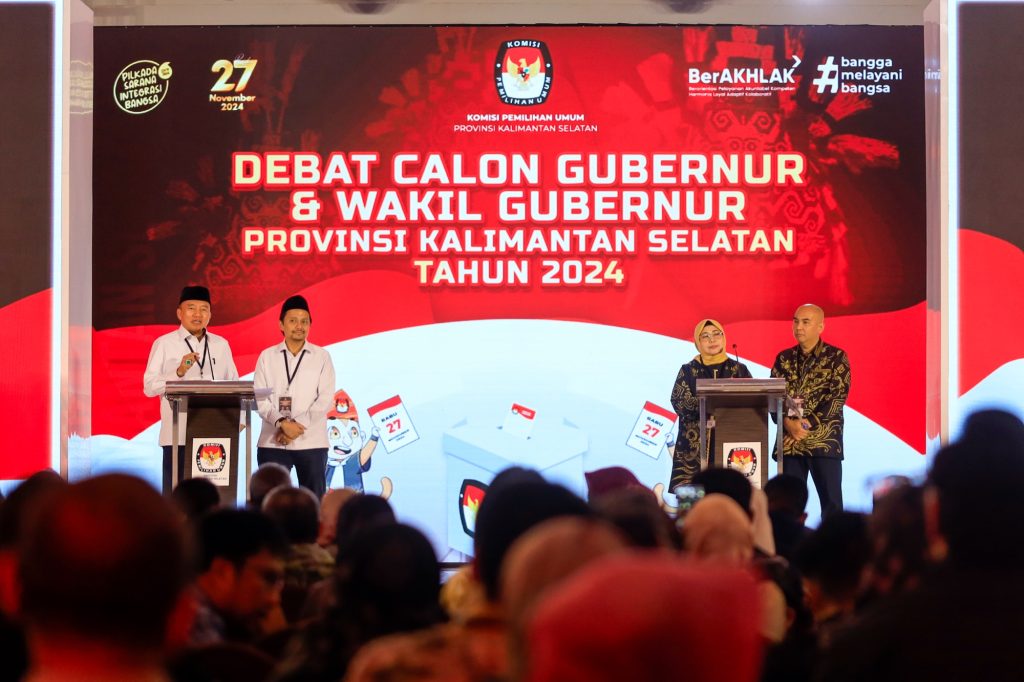 Pada debat terbuka perdana pasangan calon Gubernur dan Wakil Gubernur Kalsel dalam Pemilihan Serentak 2004 ini, mengambil tema " Pelayanan Inovatif dan Akselerasi Pembangunan Untuk Kesejahteraan Masyarakat Kalimantan Selatan . Dalam debat yang mempertemukan pasangan calon nomor urut 1 Muhidin - Hasnuryadi Sulaiman dan Paslon nomor urut 2 Raudatul Jannah - Akhmad Rozanie Himawan Nugraha ini, masing- masing pasangan calon saling beradu gagasan dan visi misi program yang ditawarkan . Acara debat berlangsung tertib dan lancar hingga akhir dengan pengamanan ketat ratusan aparat dari Polda Kalsel dan jajaran.