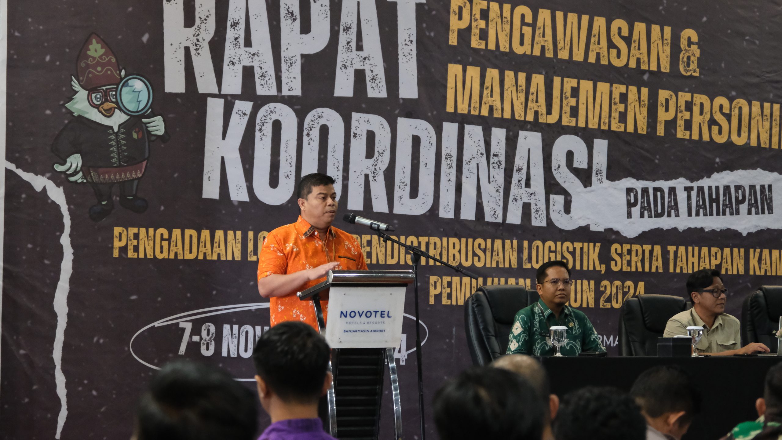Anggota Bawaslu Kalsel Des Rizal RRD dalam Rakor pengawasan dan manajemen personil tahapan pengadaan , pendistribusian logistik, serta tahapan kampanye pemilihan 2024, Banjarbaru, (8/11/2024) / Foto: Isya