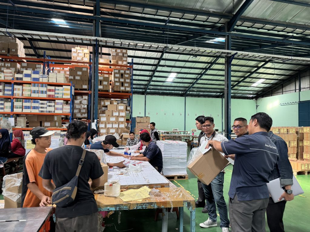 Pengawasan Langsung Logistik Surat Suara Gubernur dan Wakil Gubernur oleh Bawaslu Kalsel di PT. Percetakan Gramedia, Cikarang, Bekasi, Jawa Barat / Foto: Edwin