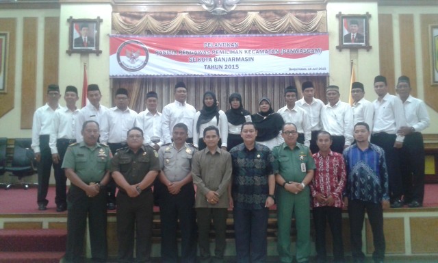 Bawaslukalselprov.info, Banjarmasin - Ketua Panwas Kota Banjarmasin Aries Mardiono melantik 15 anggota Panitia Pengawas Pemilihan Kecamatan (Panwascam) se-kota Banjarmasin di Aula Kayuh Baimbai. Selasa, (16/6/2015)