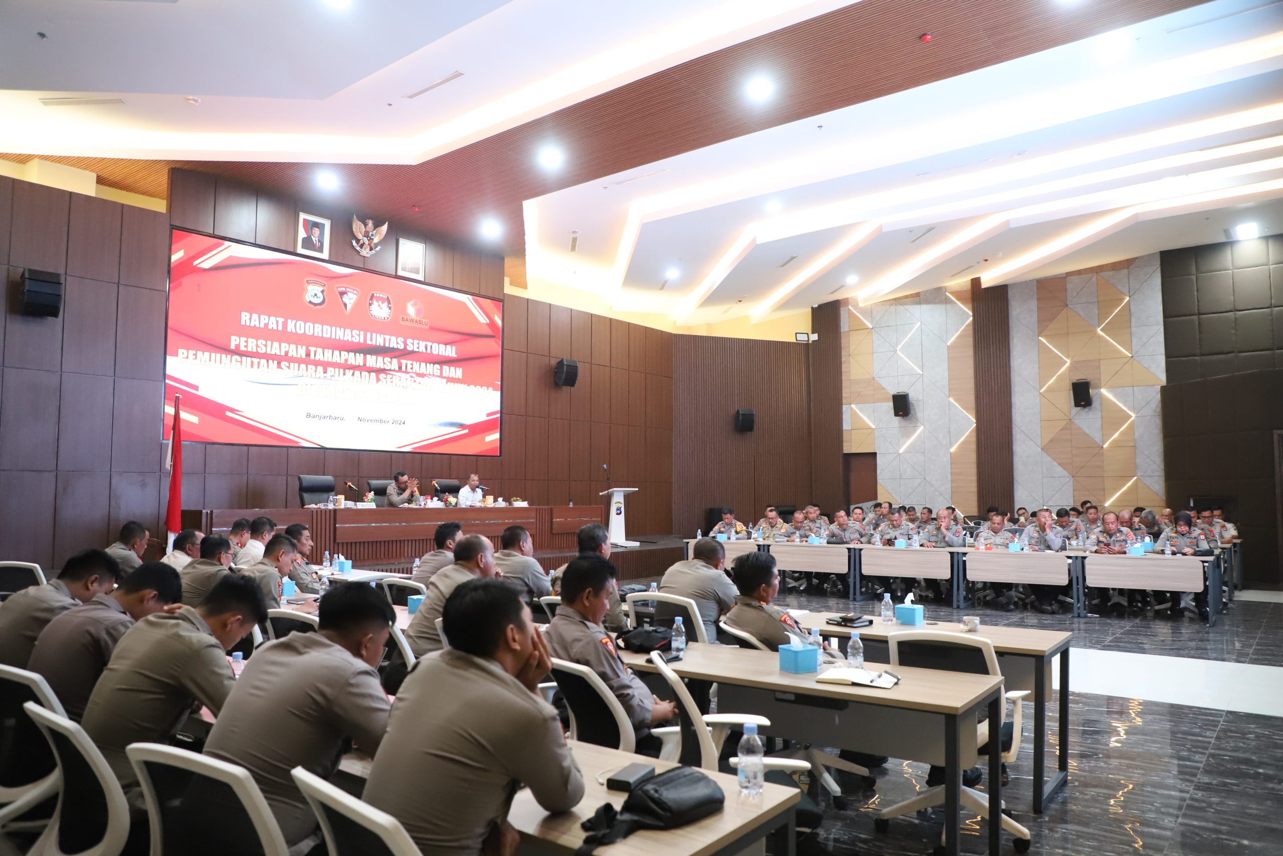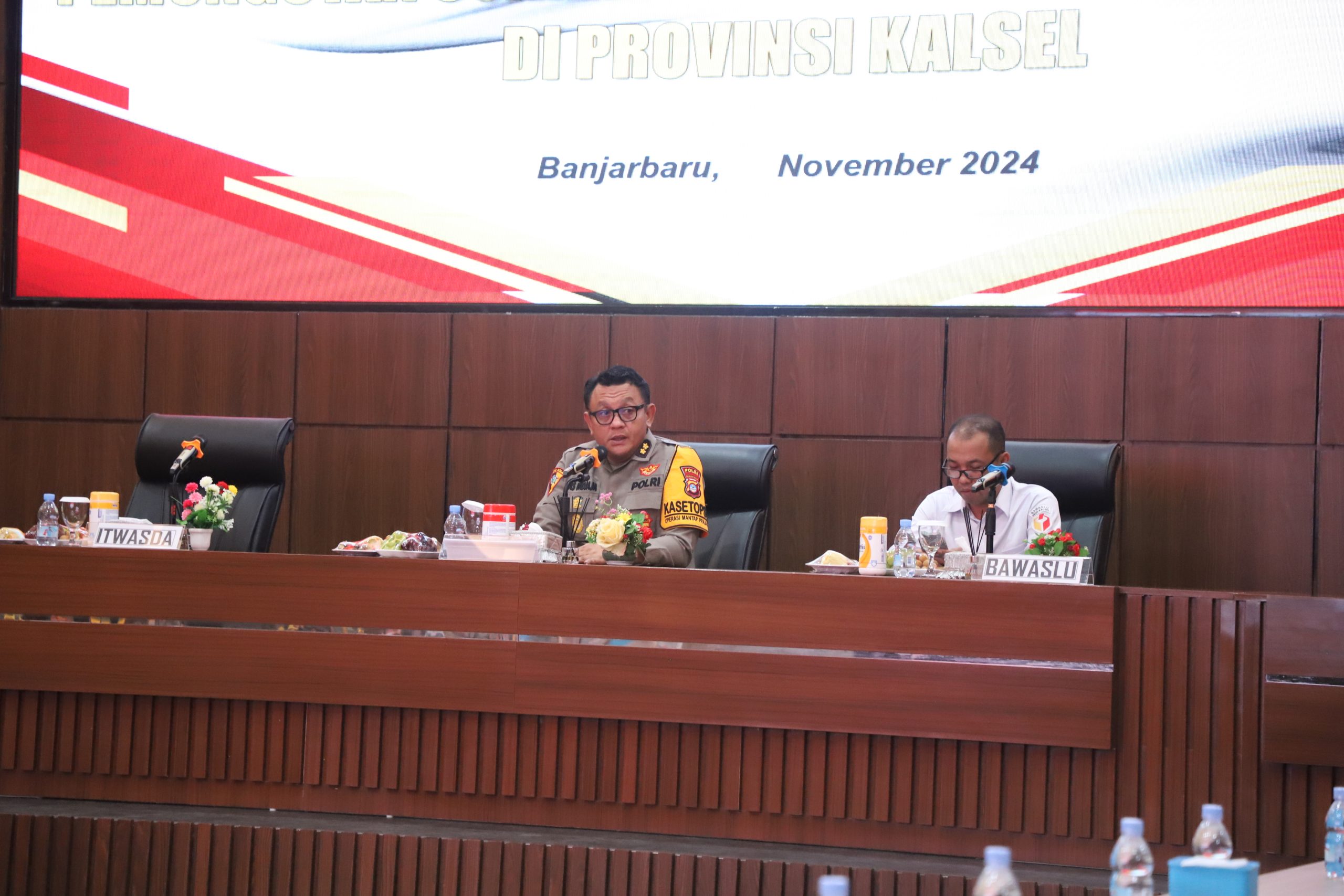 Ketua Bawaslu Kalsel Aries Mardiono saat memberikan paparan dalam Rapat Koordinasi bersama Polda Kalsel di Mako Polda Kalsel Banjarbaru, Rabu, (6/10/2024) / Foto: Edwin