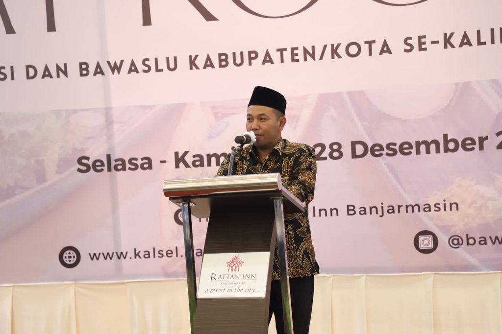 Ketua Bawaslu Kalsel; Aries Mardiono saat membuka kegiatan Rapat Koordinasi Divisi SDM, Organisasi dan Diklat Bawaslu Kabupaten/Kota Se- Kalsel di Banjarmasin, Selasa(26/12/2023)/Foto: Isya