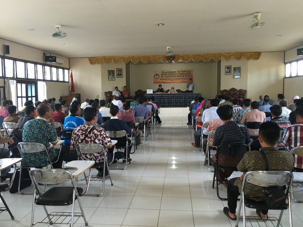 Sedangkan pelaksanaan tes tertulis di Kabupaten Barito Kuala bertempat di gedung SKB hanya diikuti sebanyak 105 peserta, enam orang tidak bisa berhadir. Sebelum pelaksanaan tes tertulis di mulai Kasubag Administrasi Bawaslu Provinsi Kalimantan Selatan memberikan arahan dan menyerahkan Soal tes Panwascam, kemudian tata tertib dalam mengikuti tes tertulis ini di bacakan oleh Kasubag H3 Bawaslu Provinsi Kalimantan Selatan.